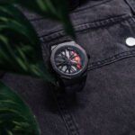 This 48mm black brushed stainless steel timepiece mirrors the P1’s hybrid V8 performance and aerodynamic design. Featuring scratch-resistant sapphire glass, carbon fiber-inspired dial, and red accents reflecting its 903 hp power, it encapsulates McLaren’s engineering excellence in a bold, wearable statement.