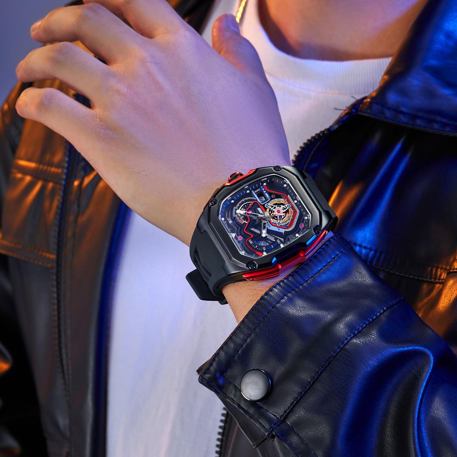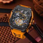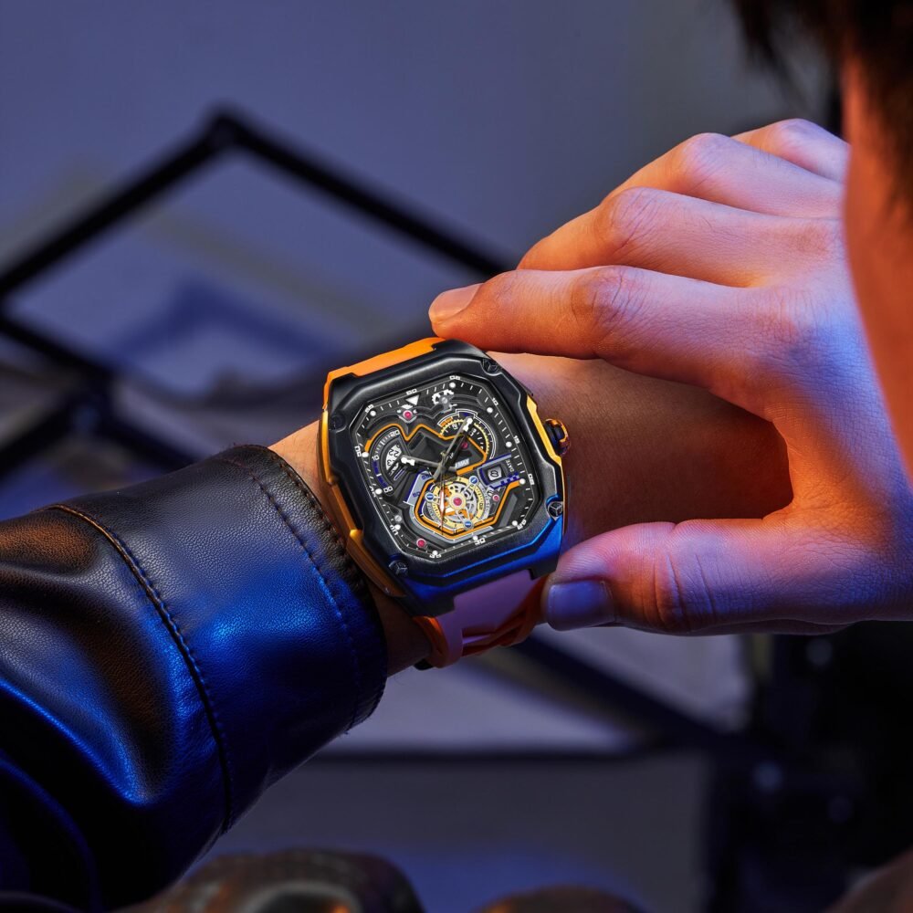 Inspired by high-speed race tracks, this watch channels the adrenaline of motorsport. From its aerodynamic design to dial details resembling speedometers, every element reflects precision, speed, and the relentless pursuit of victory on and off the track.